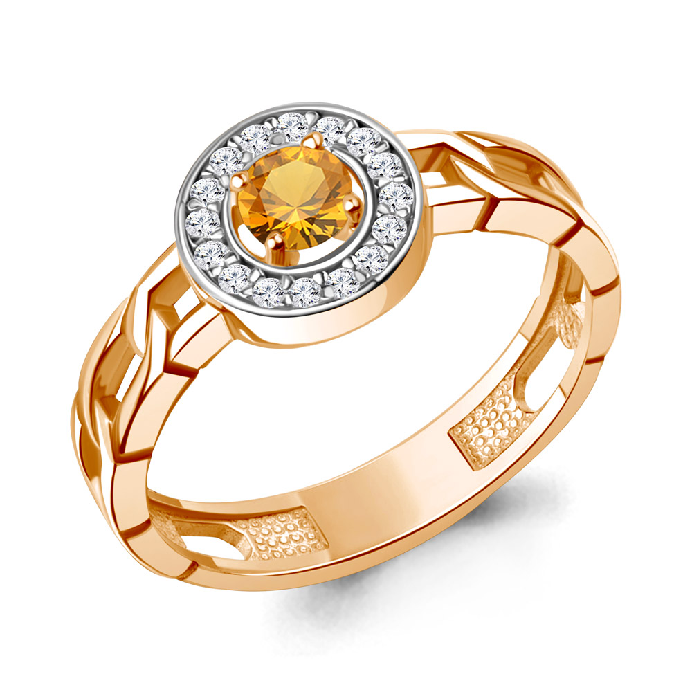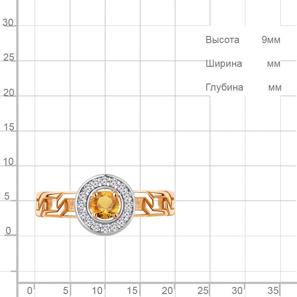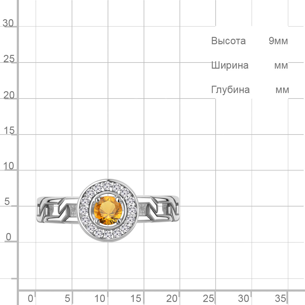 65017606А Кольцо из Серебра с фианитами, цитрином