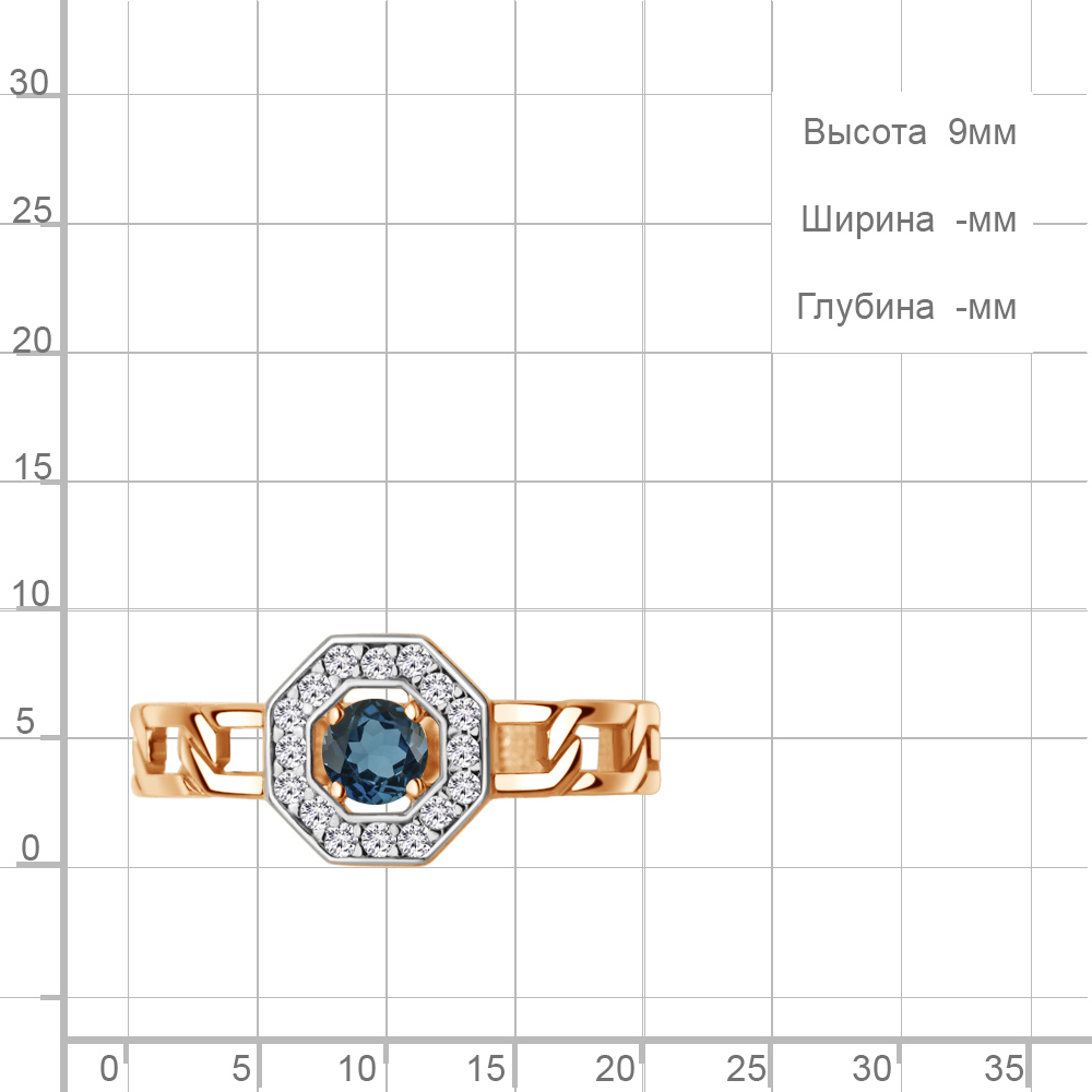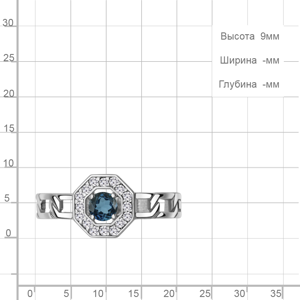 65017808А Кольцо из Серебра с топазом лондон блю, фианитами