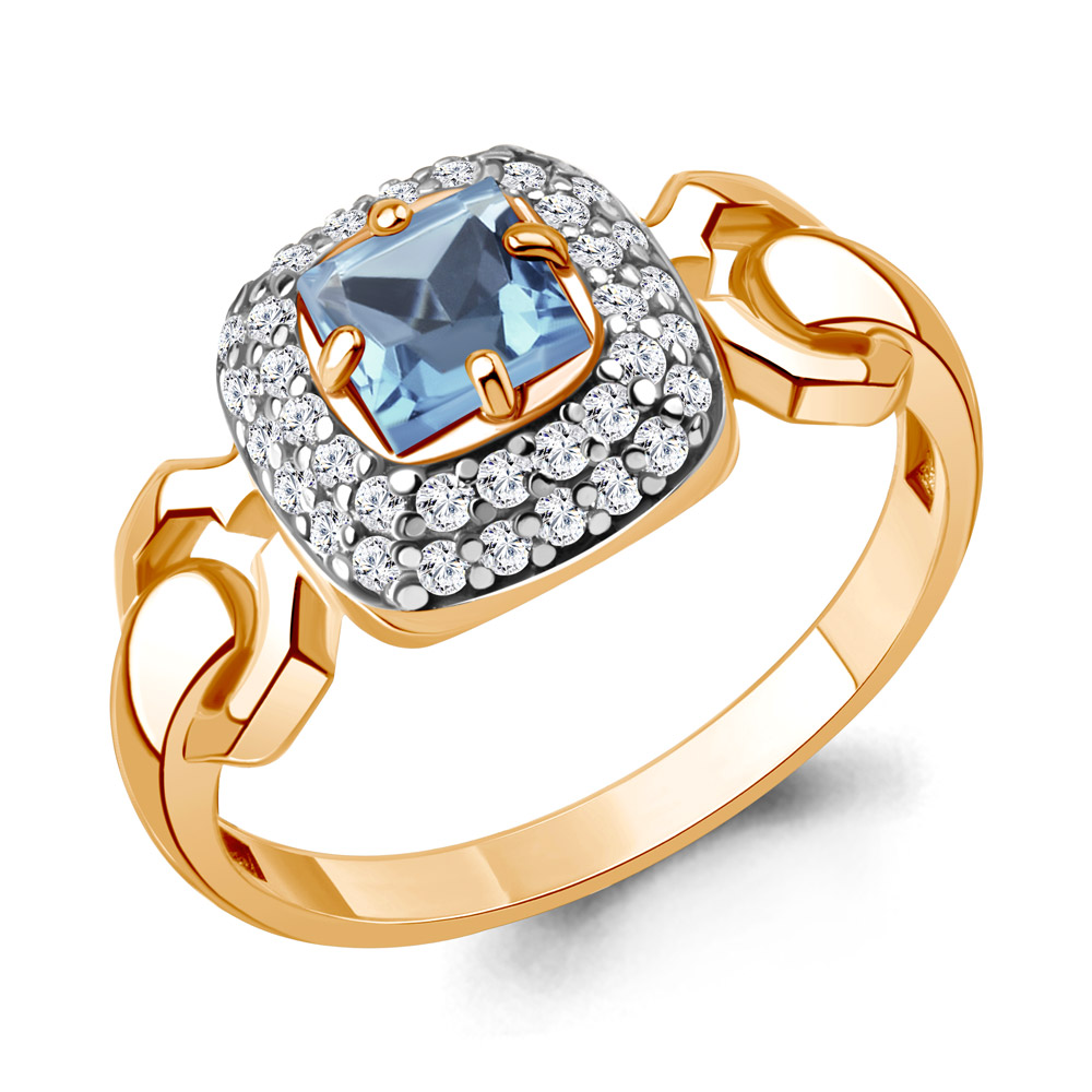 65018405А Кольцо из Серебра с топазом свисс блю, фианитами