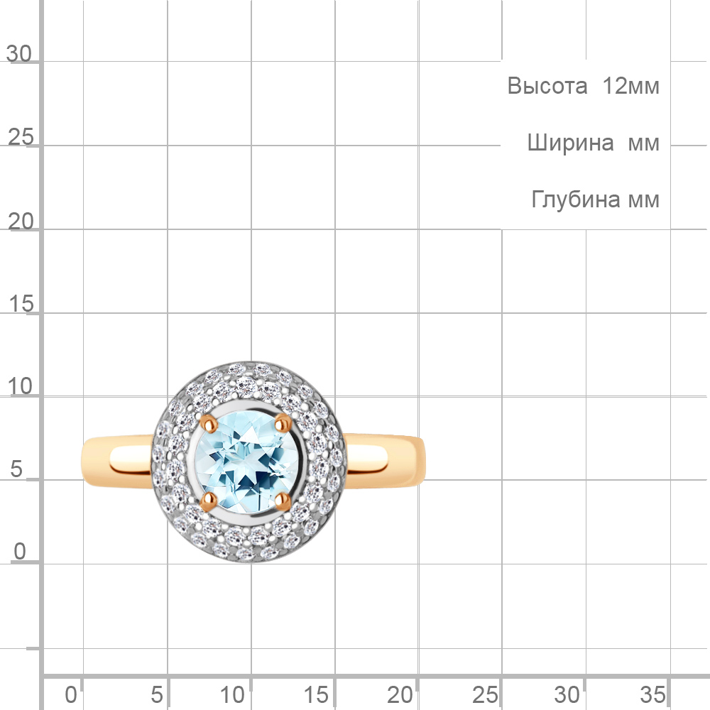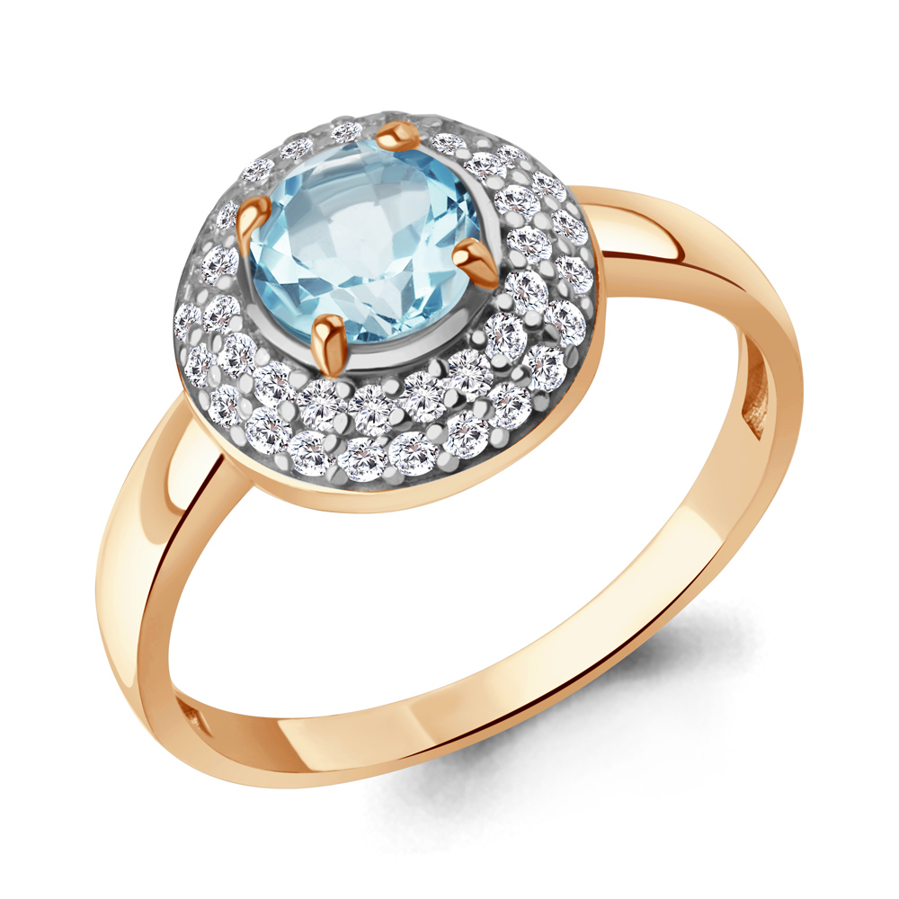 65019102А Кольцо из Серебра с топазом скай блю, фианитами