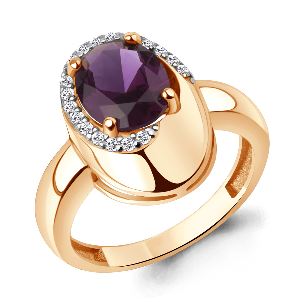 65020184А Кольцо из Серебра с наноаметистом иск., фианитами