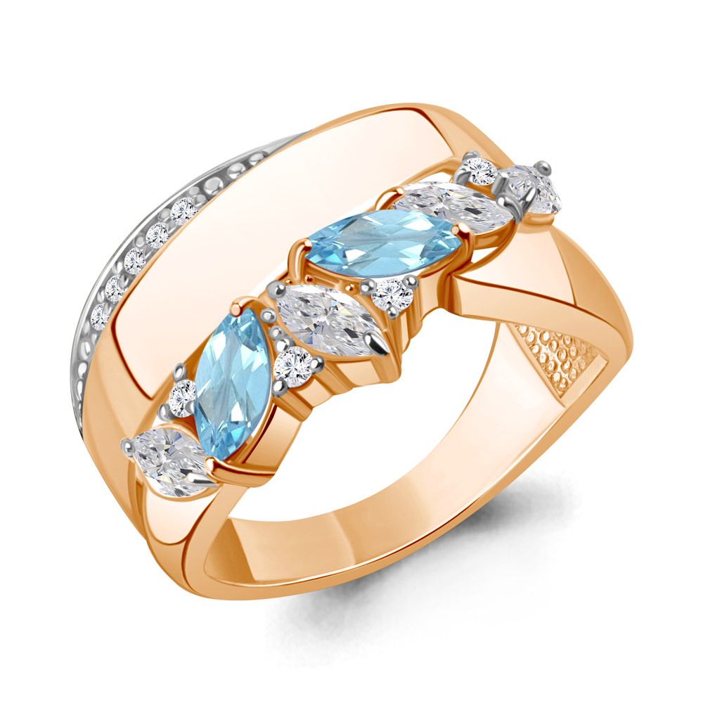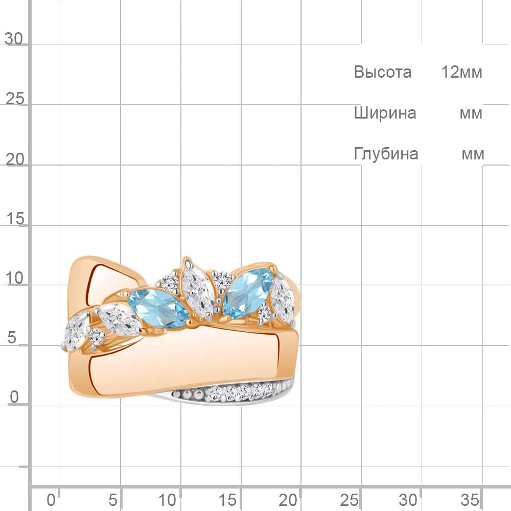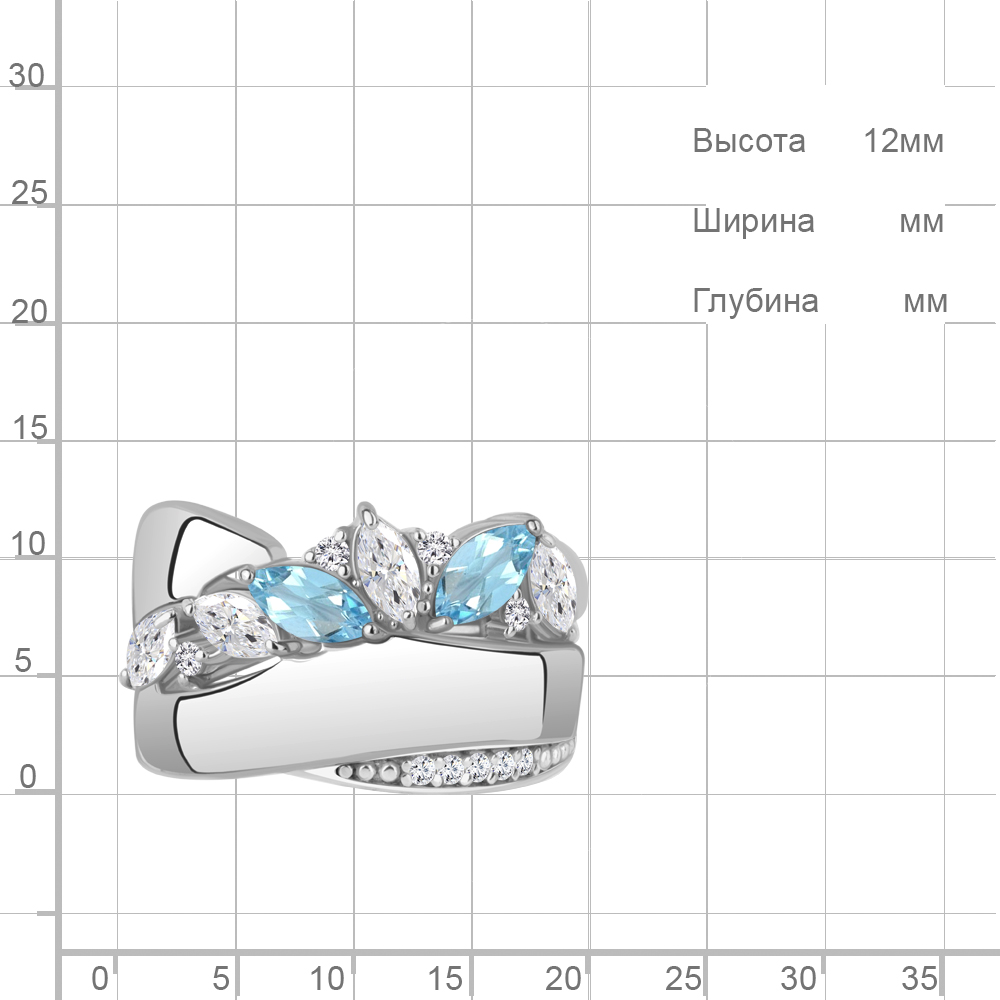65022702А Кольцо из Серебра с топазами скай блю, фианитами