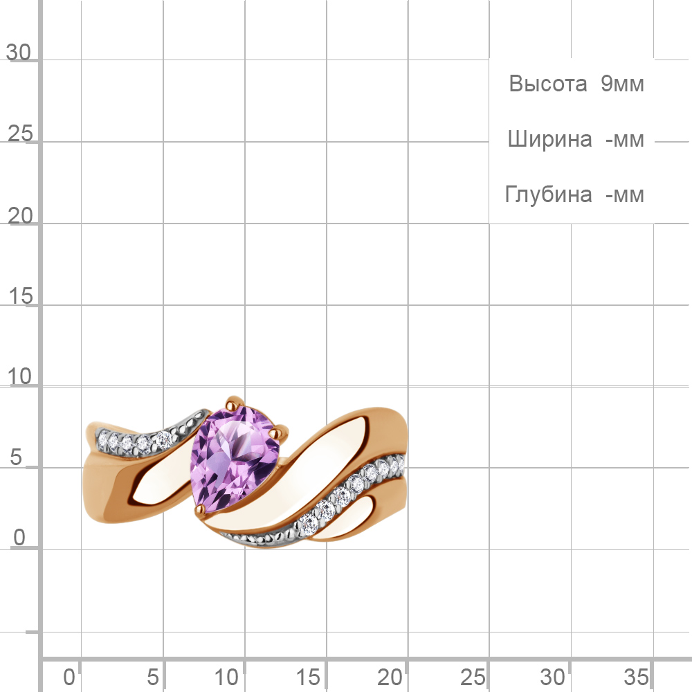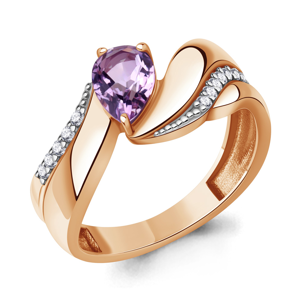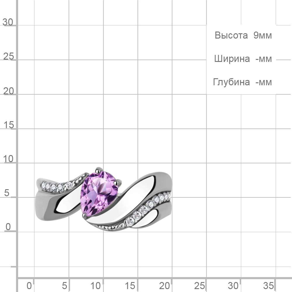 65024104А Кольцо из Серебра с аметистом, фианитами