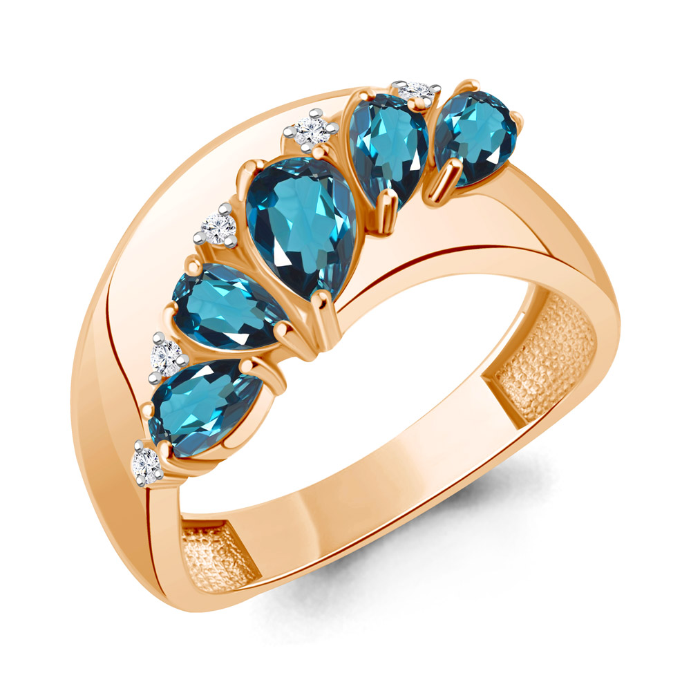65024208А Кольцо из Серебра с топазами лондон блю, фианитами