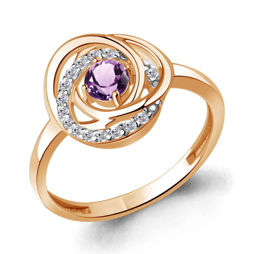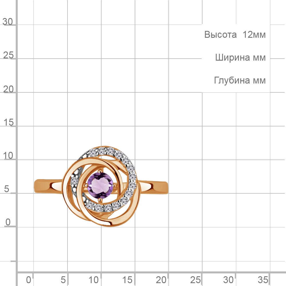65024404А Кольцо из Серебра с аметистом, фианитами
