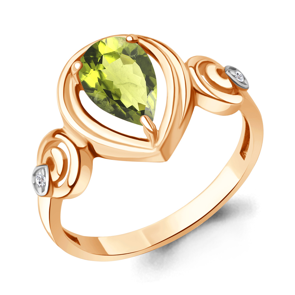 65025007А Кольцо из Серебра с фианитами, хризолитом