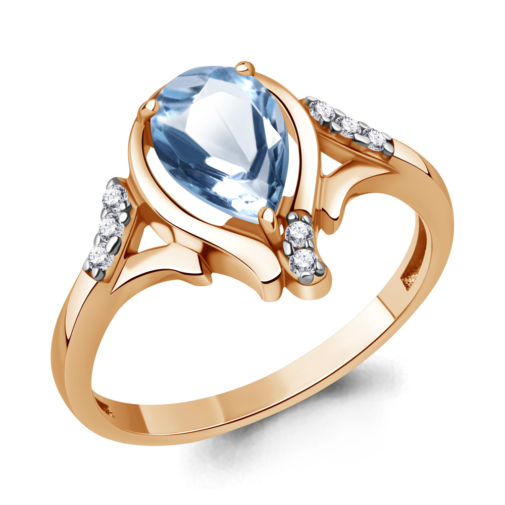 65025405А Кольцо из Серебра с топазом свисс блю, фианитами