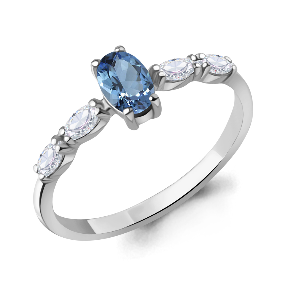 65030005 Кольцо из Золота с топазом свисс блю, фианитами