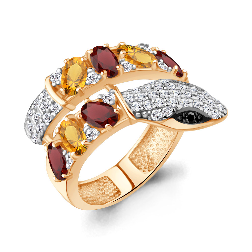 65030734АЧ Кольцо из Серебра с гранатами, нанокристаллами, фианитами, цитринами