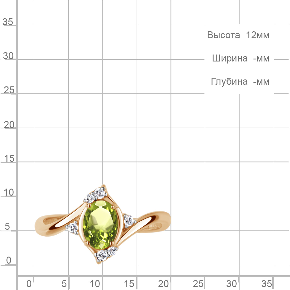 65032207А Кольцо из Серебра с фианитами, хризолитом