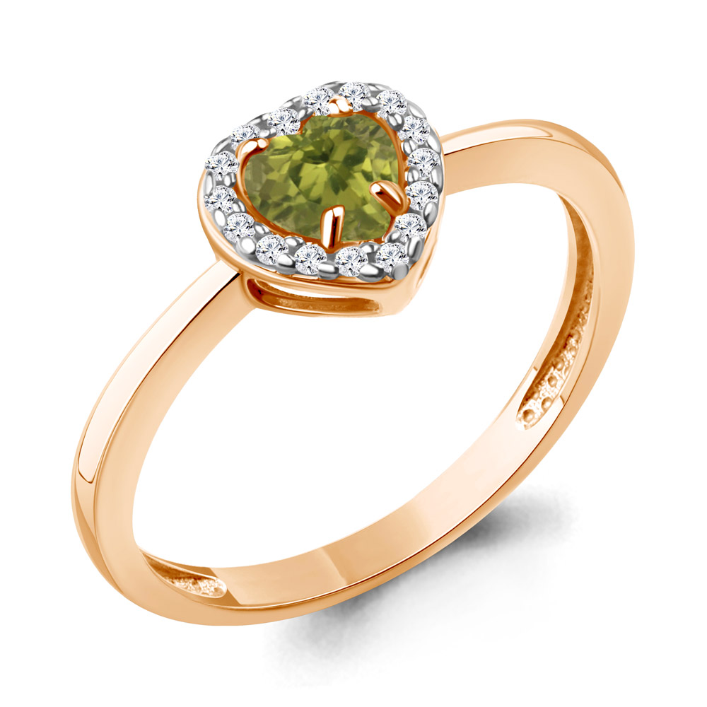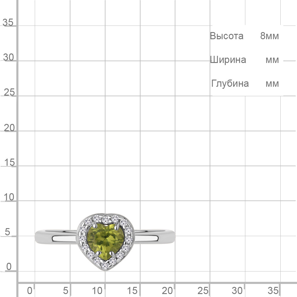 65032907А Кольцо из Серебра с фианитами, хризолитом