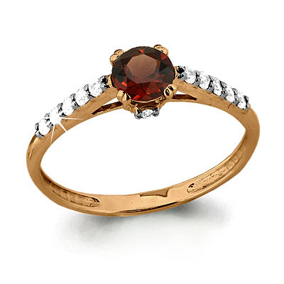 6516403А Кольцо из Серебра с гранатом, фианитами