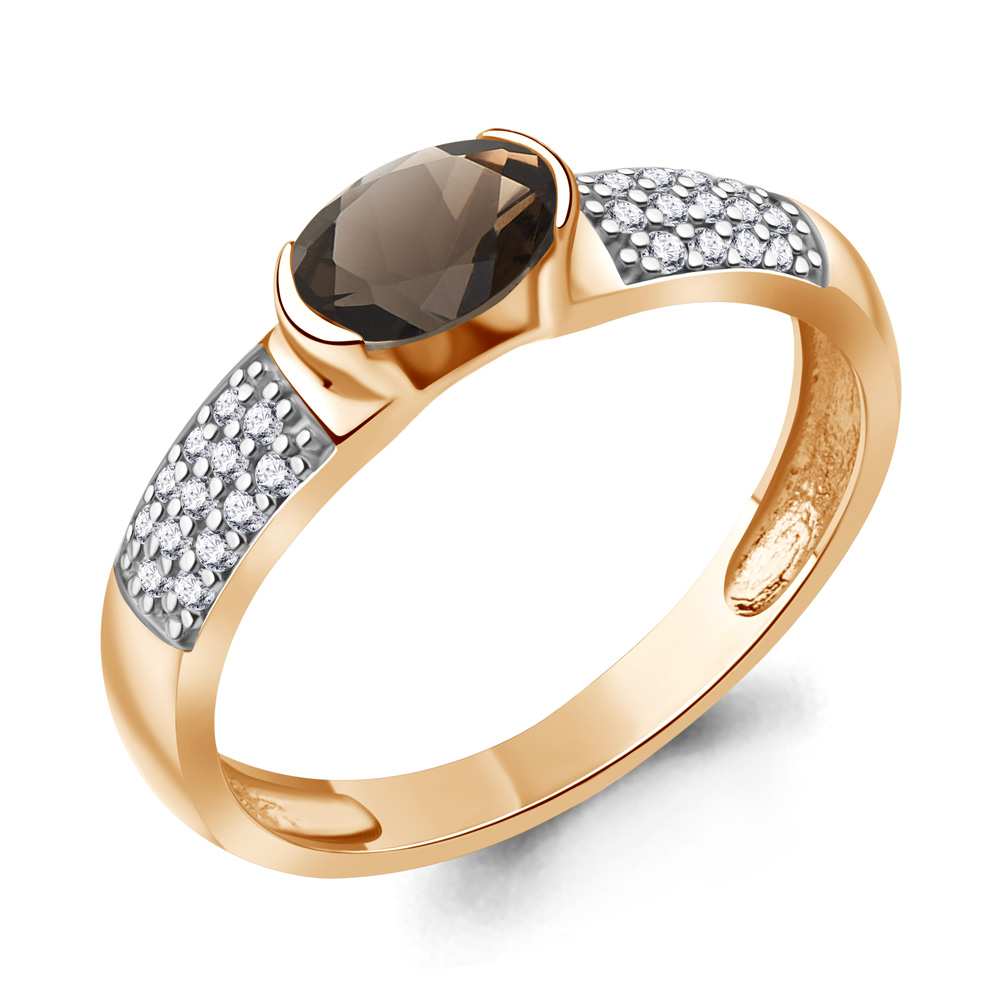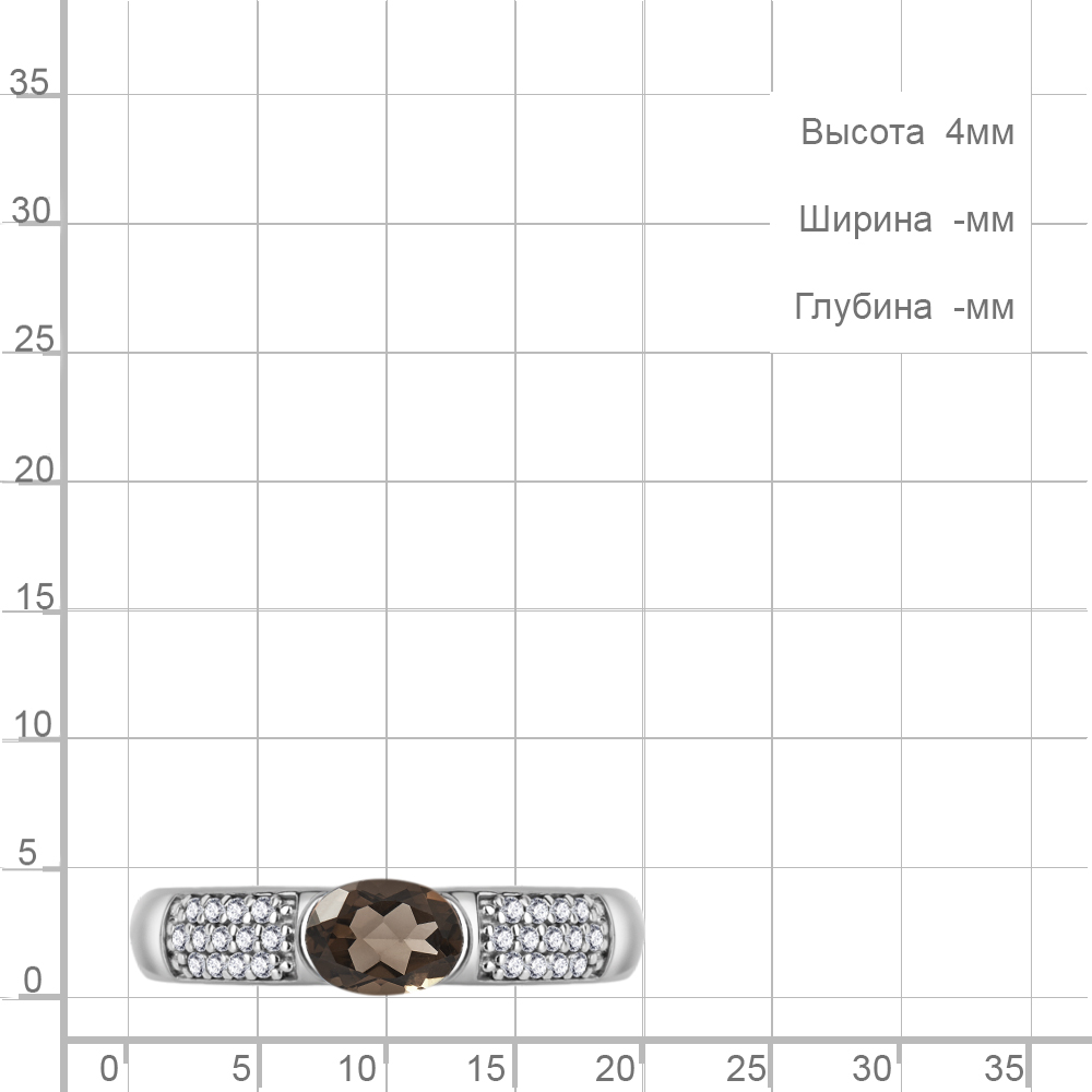 6519401А Кольцо из Серебра с кварцем дымчатым, фианитами