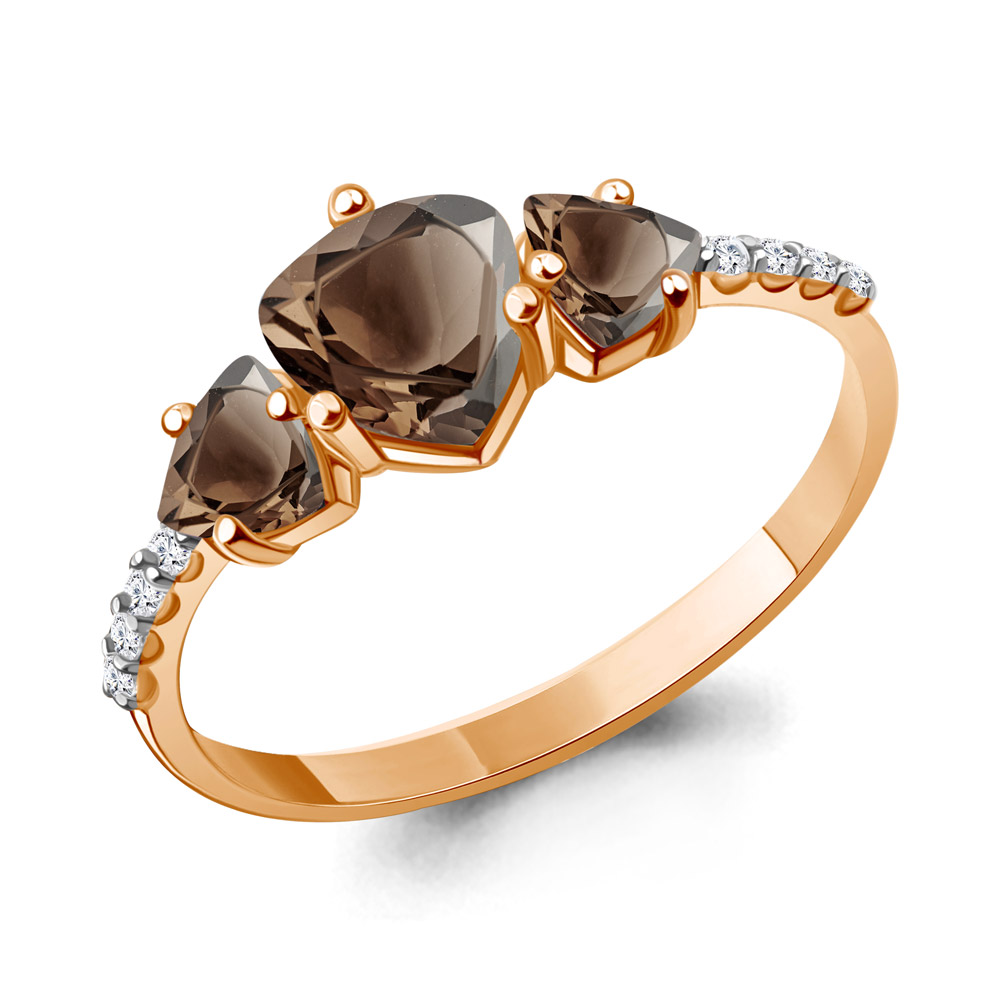 6519701А Кольцо из Серебра с кварцами дымчатыми, фианитами