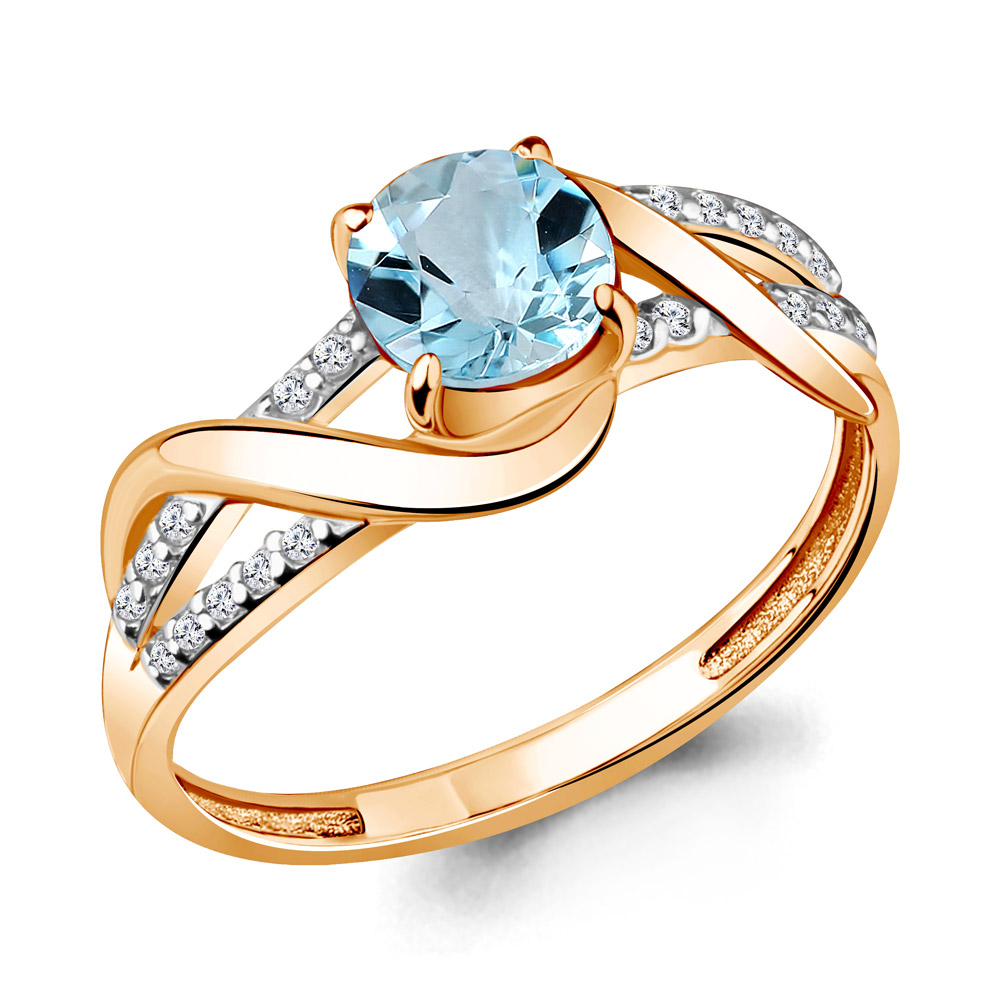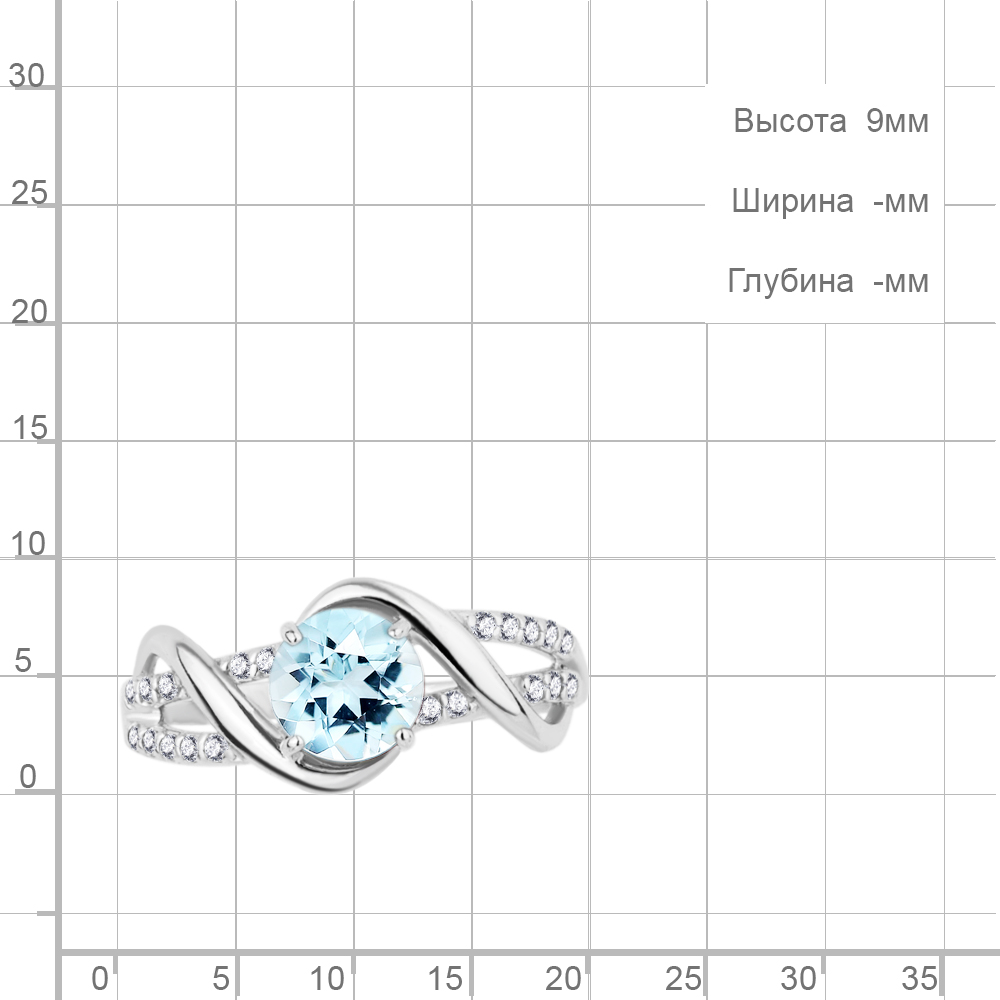 6520902А Кольцо из Серебра с топазом скай блю, фианитами