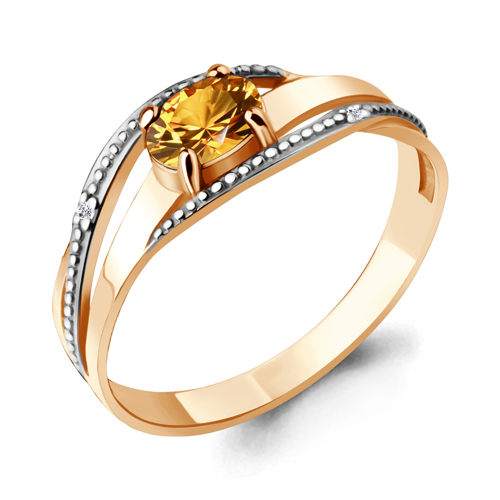 6522506 Кольцо из Серебра с фианитами, цитрином