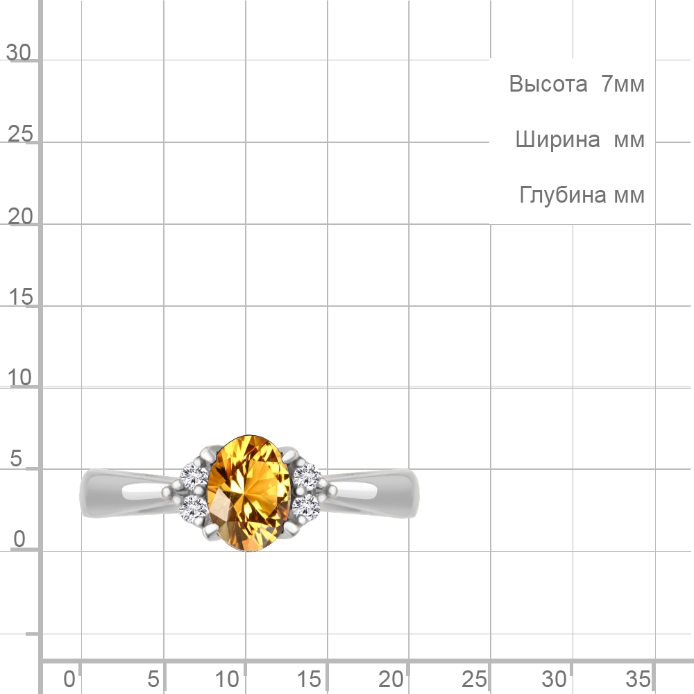 6523606А Кольцо из Серебра с фианитами, цитрином