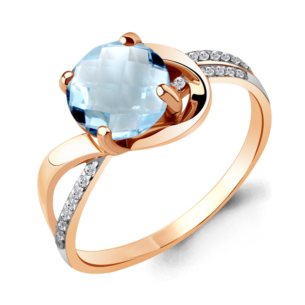 6527602А Кольцо из Серебра с топазом скай блю, фианитами