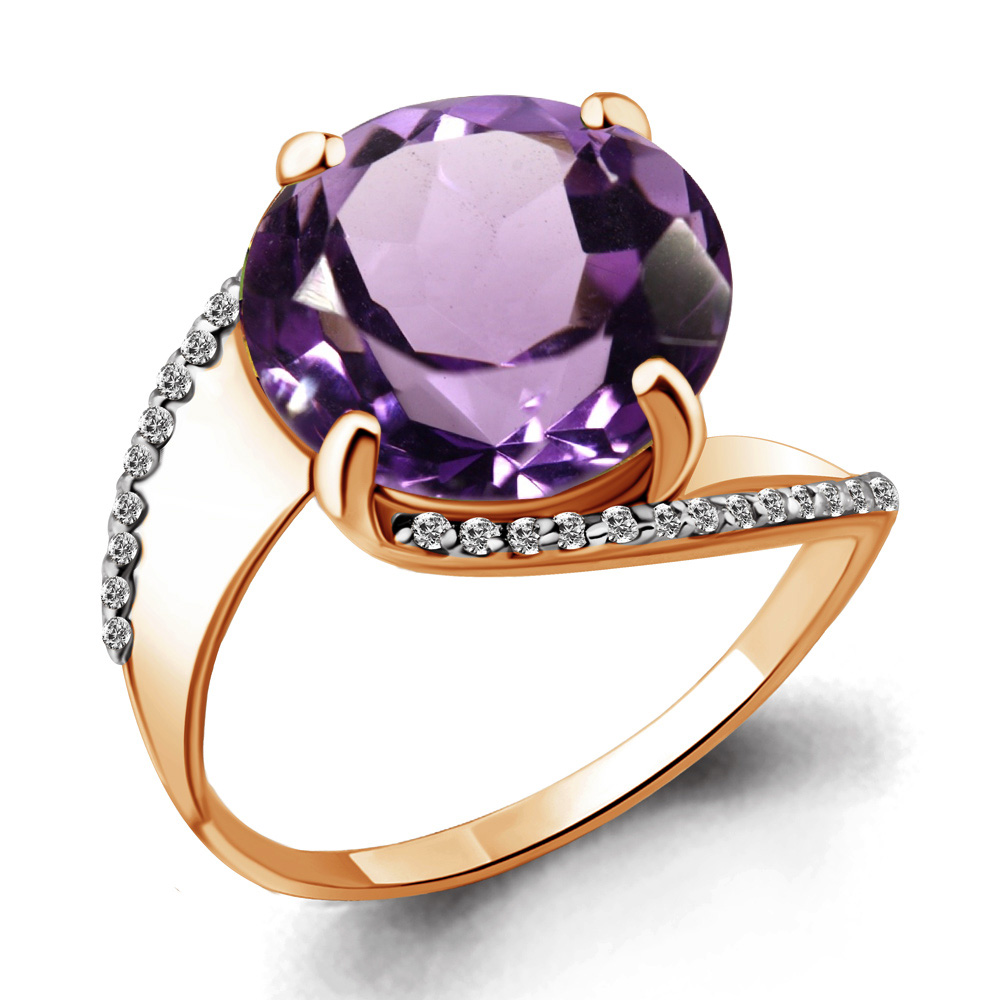 6534204А Кольцо из Серебра с аметистом, фианитами