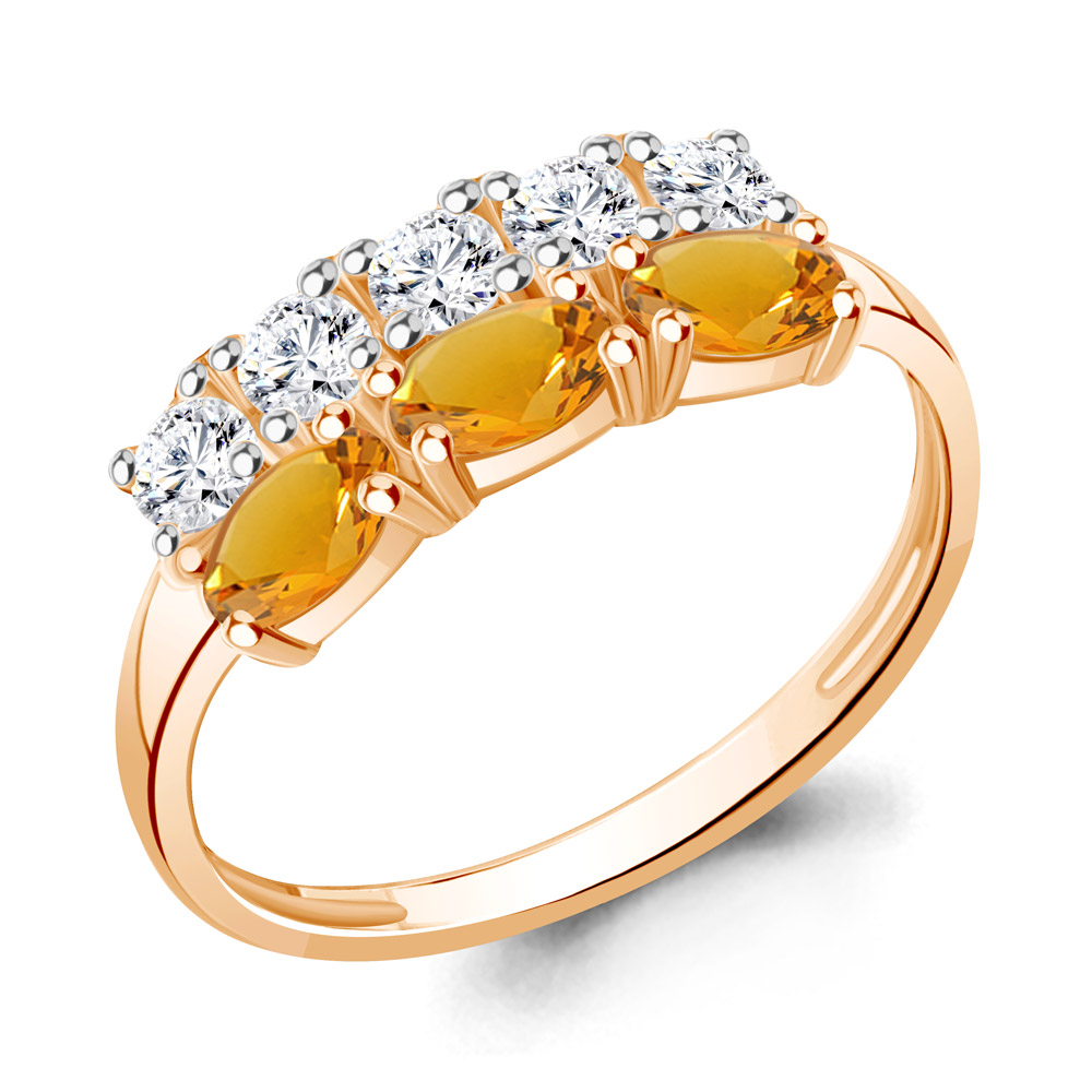 6535506А Кольцо из Серебра с фианитами, цитринами