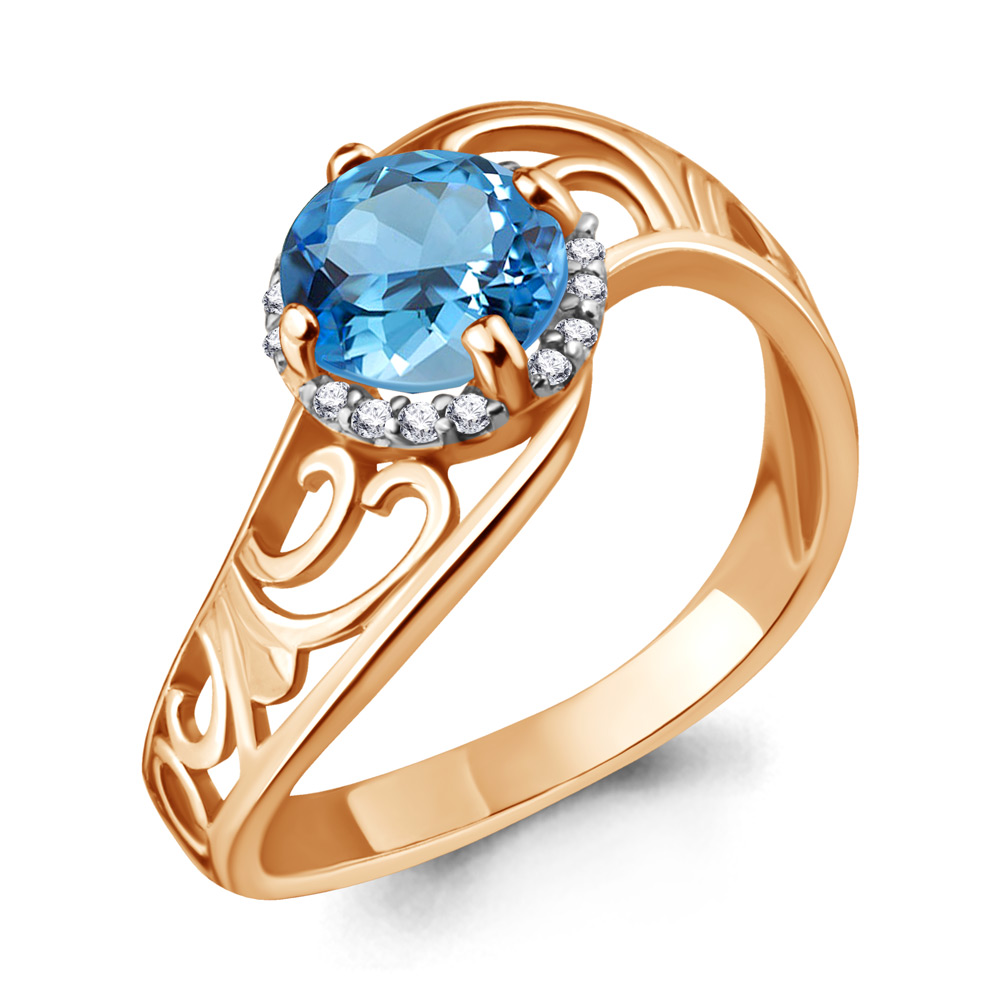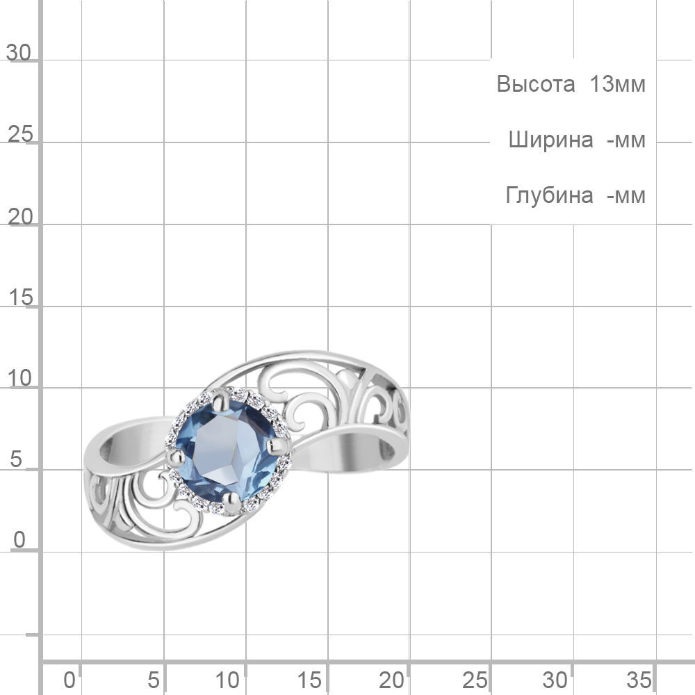 6539405А Кольцо из Серебра с топазом свисс блю, фианитами