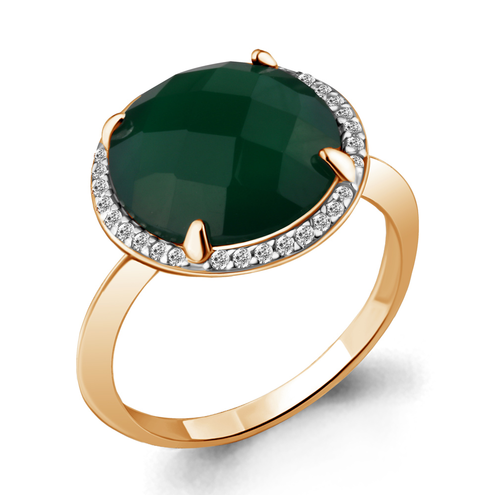 6543109А Кольцо из Серебра с агатом, фианитами