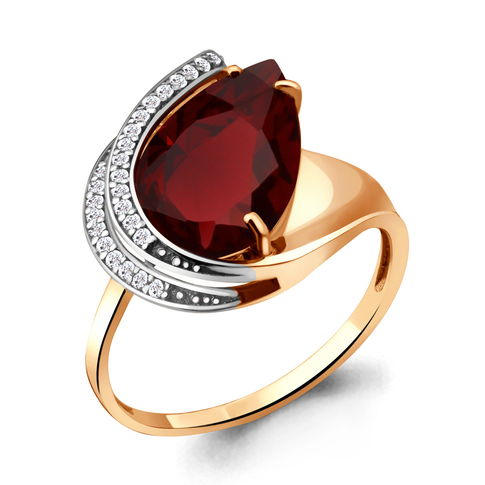 6553485А Кольцо из Серебра с наногранатом, фианитами из коллекции "Каприз"