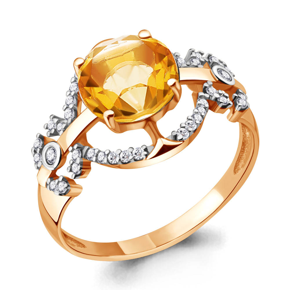6558306А Кольцо из Серебра с фианитами, цитрином из коллекции "Ар-Деко"