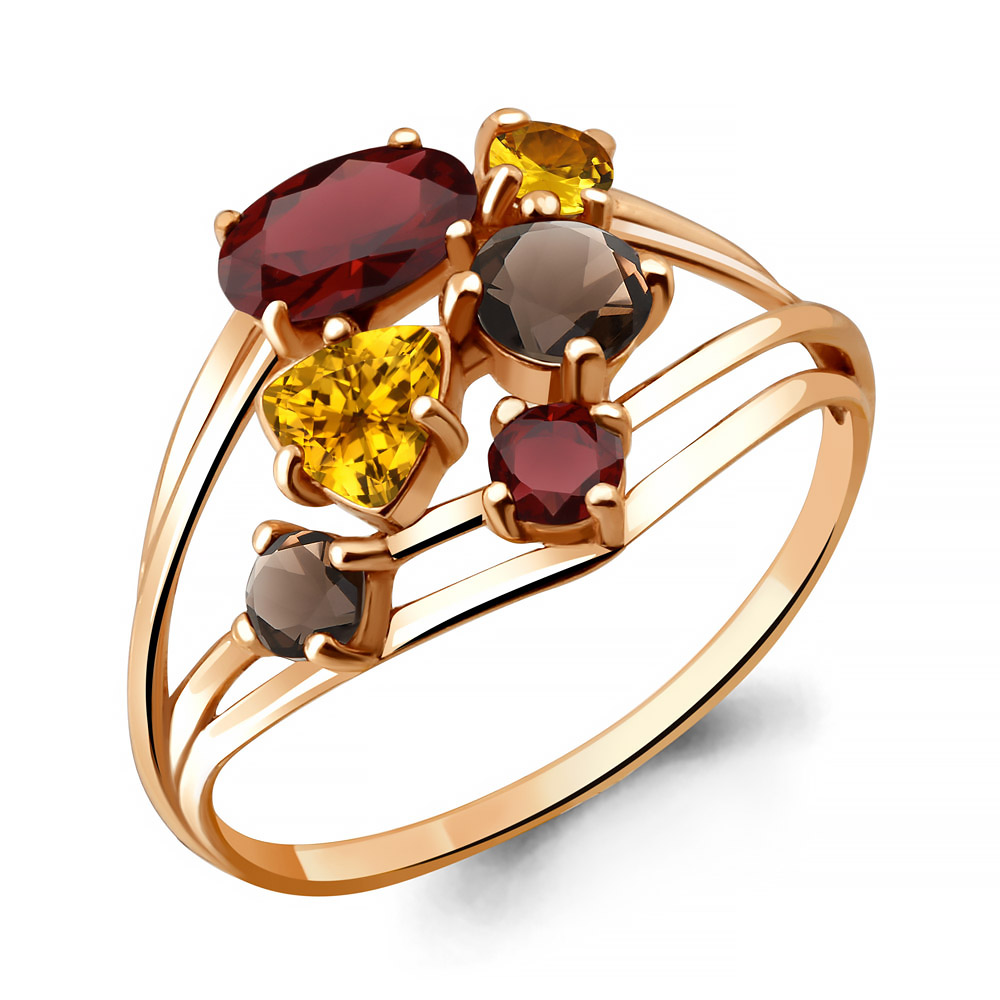 6562647 Кольцо из Серебра с гранатами, кварцами дымчатыми, цитринами из коллекции "Алиса"