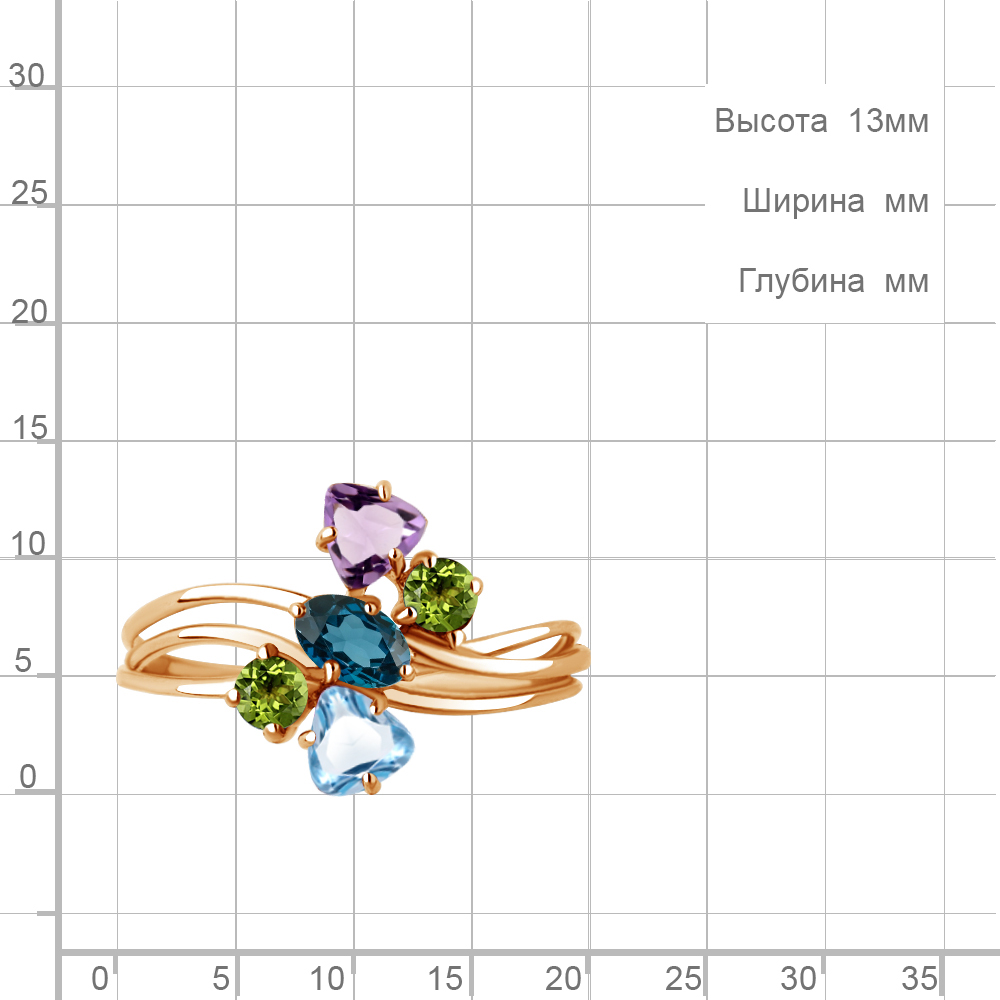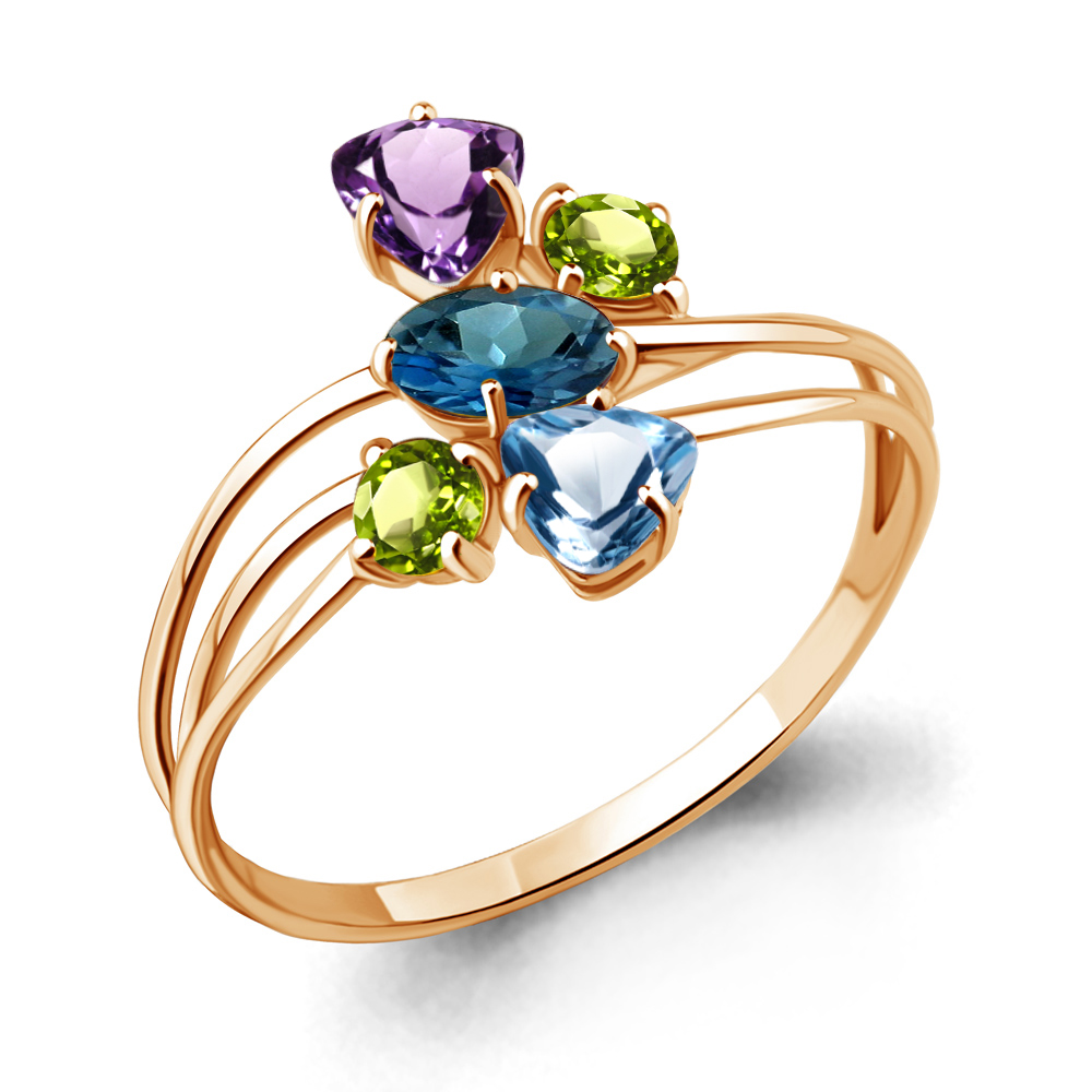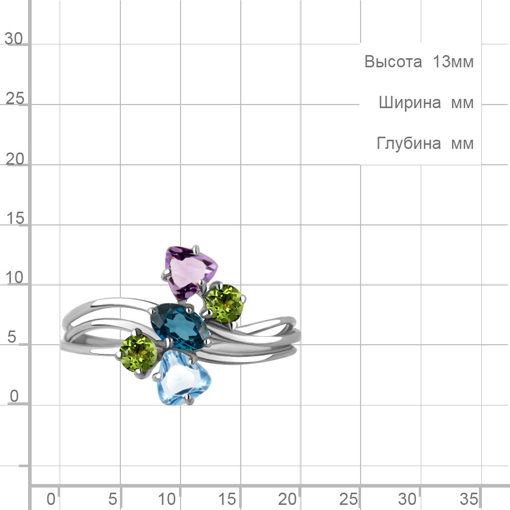 6562752 Кольцо из Серебра с аметистом, топазом лондон блю, топазом свисс блю, хризолитами из коллекции "Алиса"
