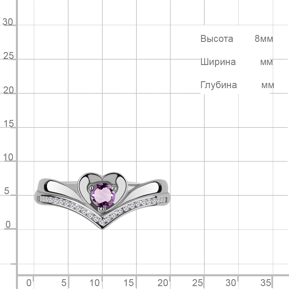 6567404А Кольцо из Серебра с аметистом, фианитами