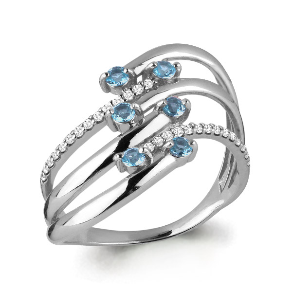 6573205А Кольцо из Серебра с топазами свисс блю, фианитами