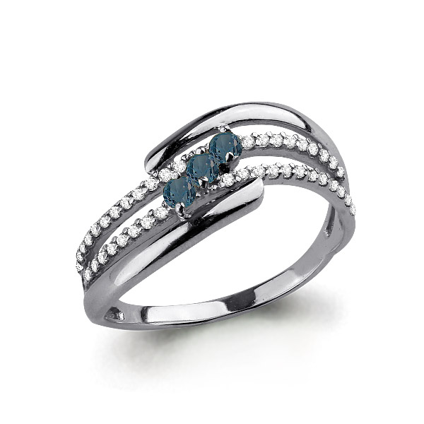 6573508А Кольцо из Серебра с топазами лондон блю, фианитами