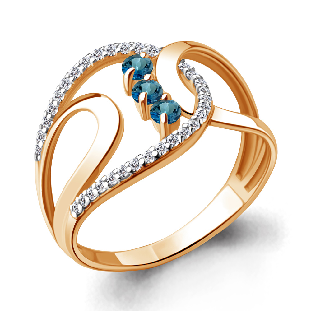 6573608А Кольцо из Серебра с топазами лондон блю, фианитами