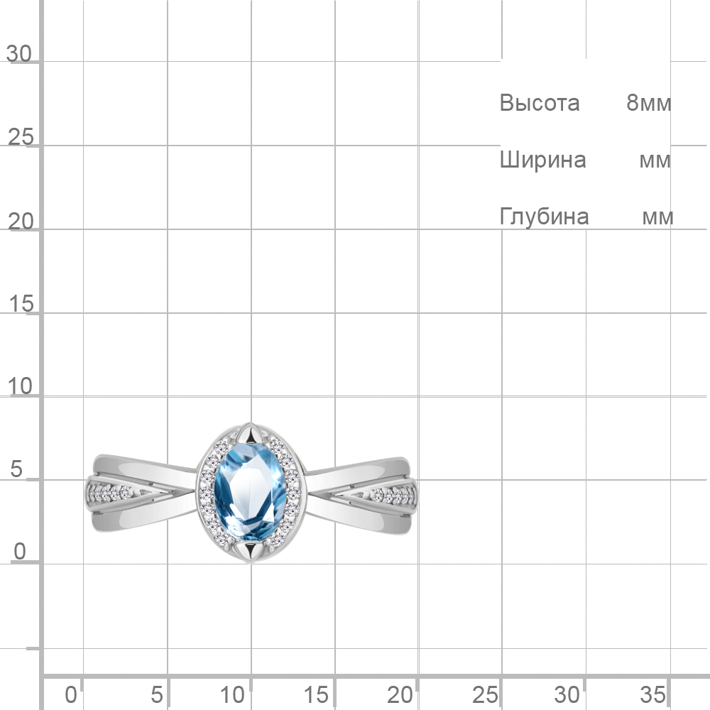 6578205А Кольцо из Серебра с топазом свисс блю, фианитами