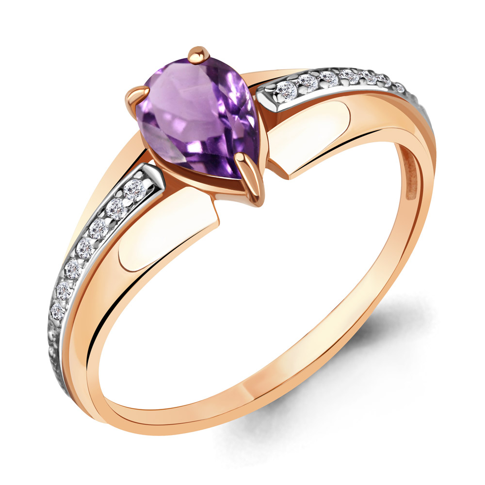 6578904А Кольцо из Серебра с аметистом, фианитами