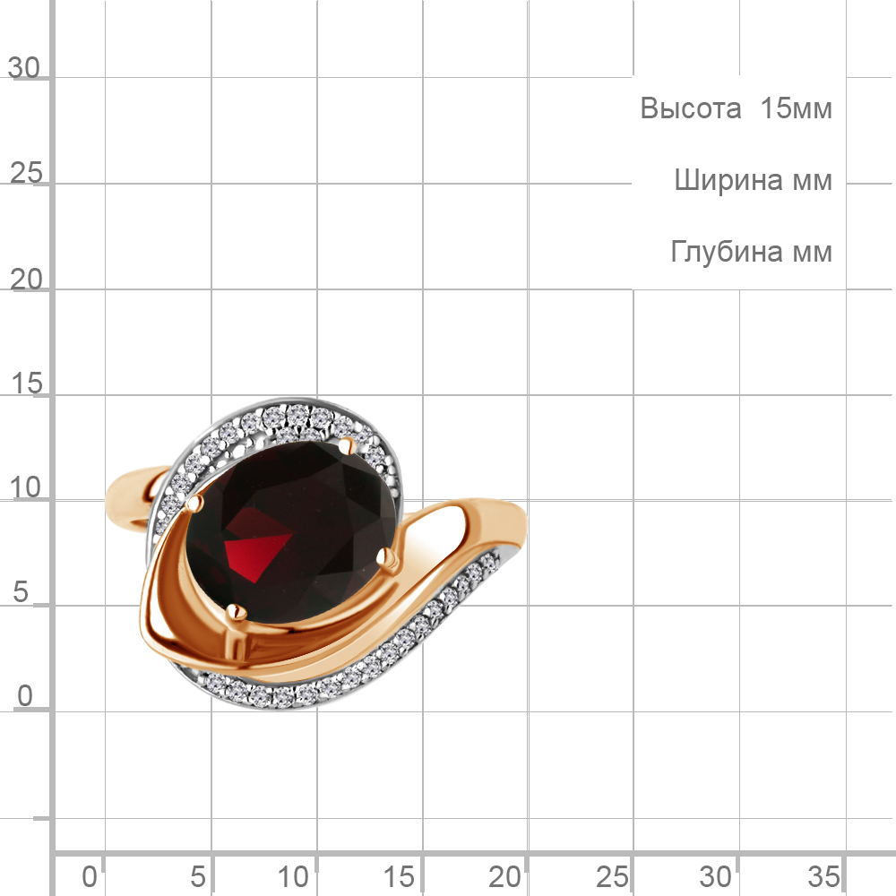 6579085А Кольцо из Серебра с наногранатом, фианитами из коллекции "Каприз"
