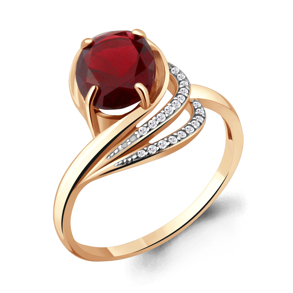 6579585А Кольцо из Серебра с наногранатом, фианитами из коллекции "Каприз"