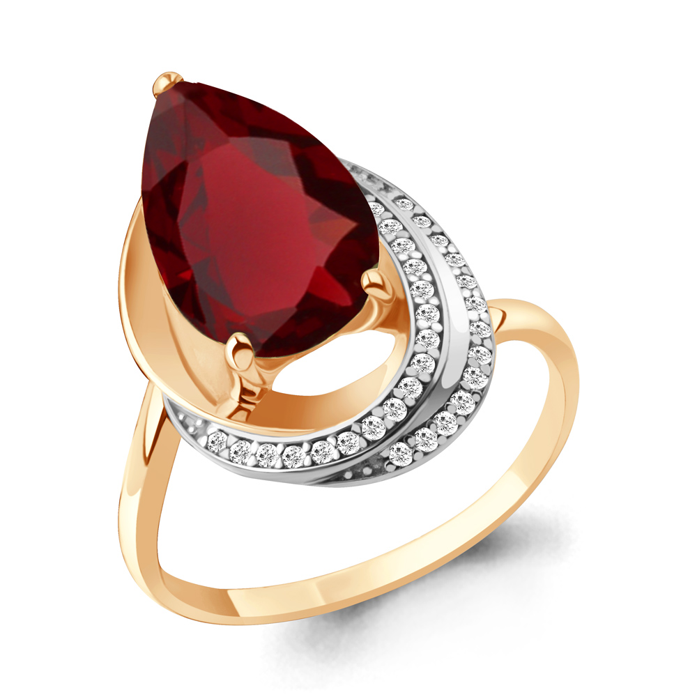 6580385А Кольцо из Серебра с наногранатом, фианитами из коллекции "Каприз"