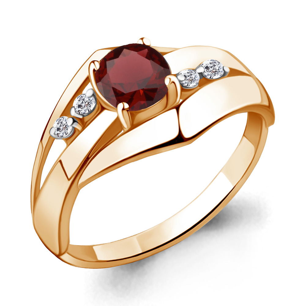 6581803А Кольцо из Серебра с гранатом, фианитами