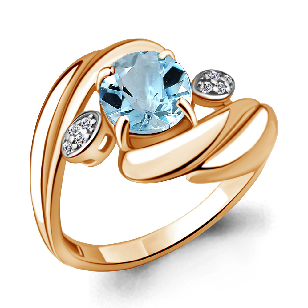 6587602А Кольцо из Серебра с топазом скай блю, фианитами