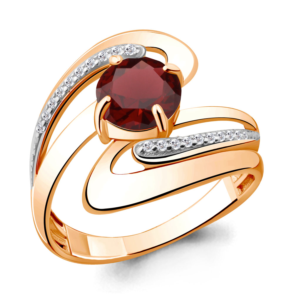 6587803А Кольцо из Серебра с гранатом, фианитами