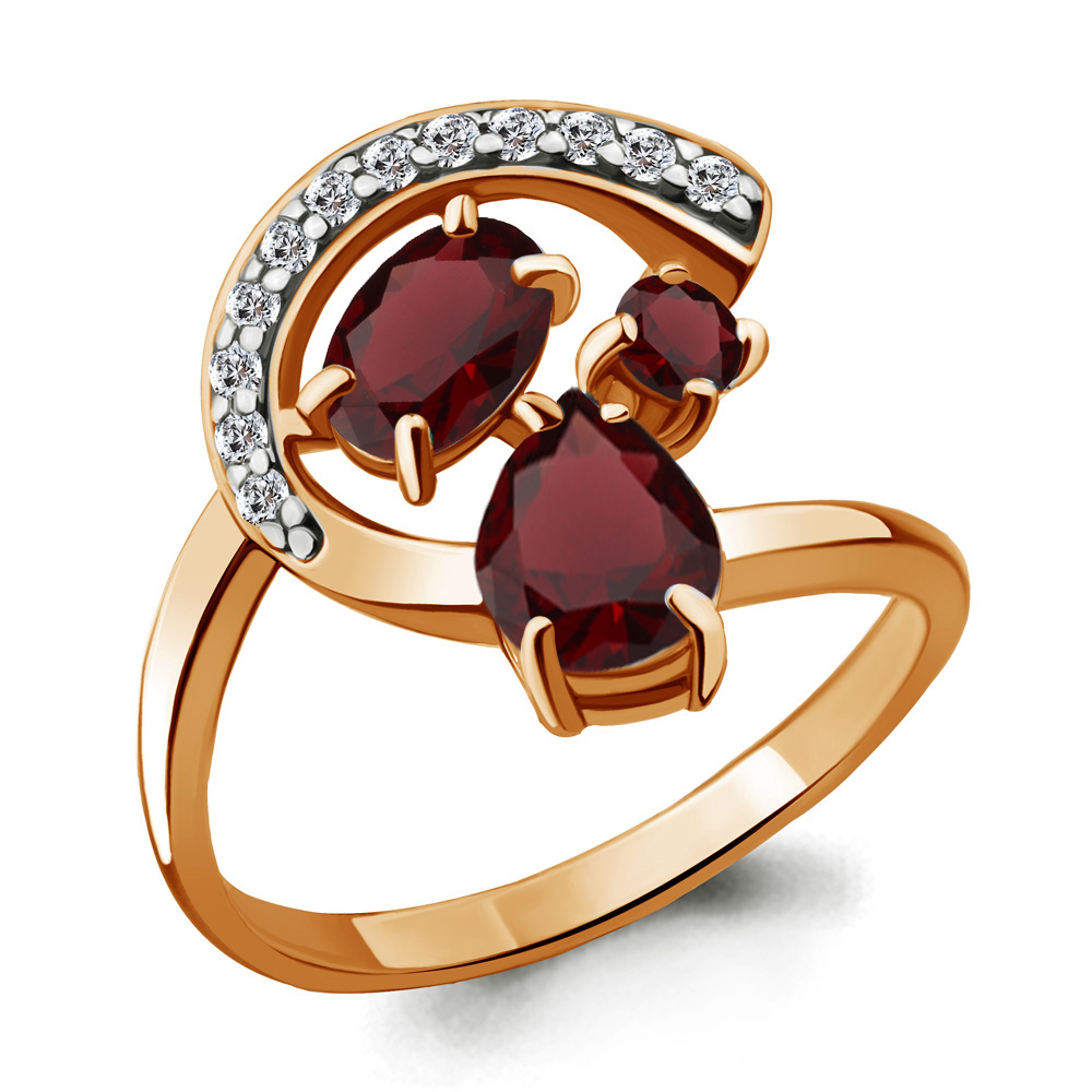 6592503А Кольцо из Серебра с гранатами, фианитами