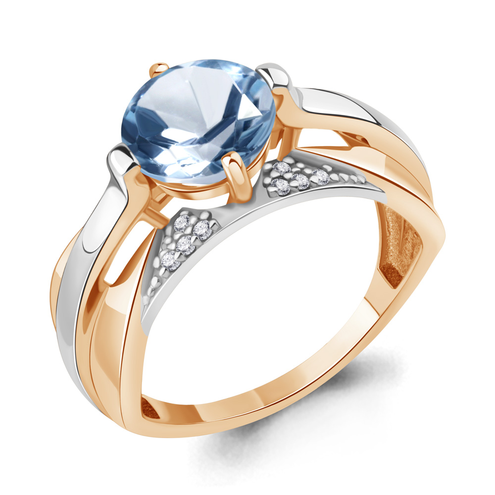 6593505А Кольцо из Серебра с топазом свисс блю, фианитами из коллекции "Maxima"