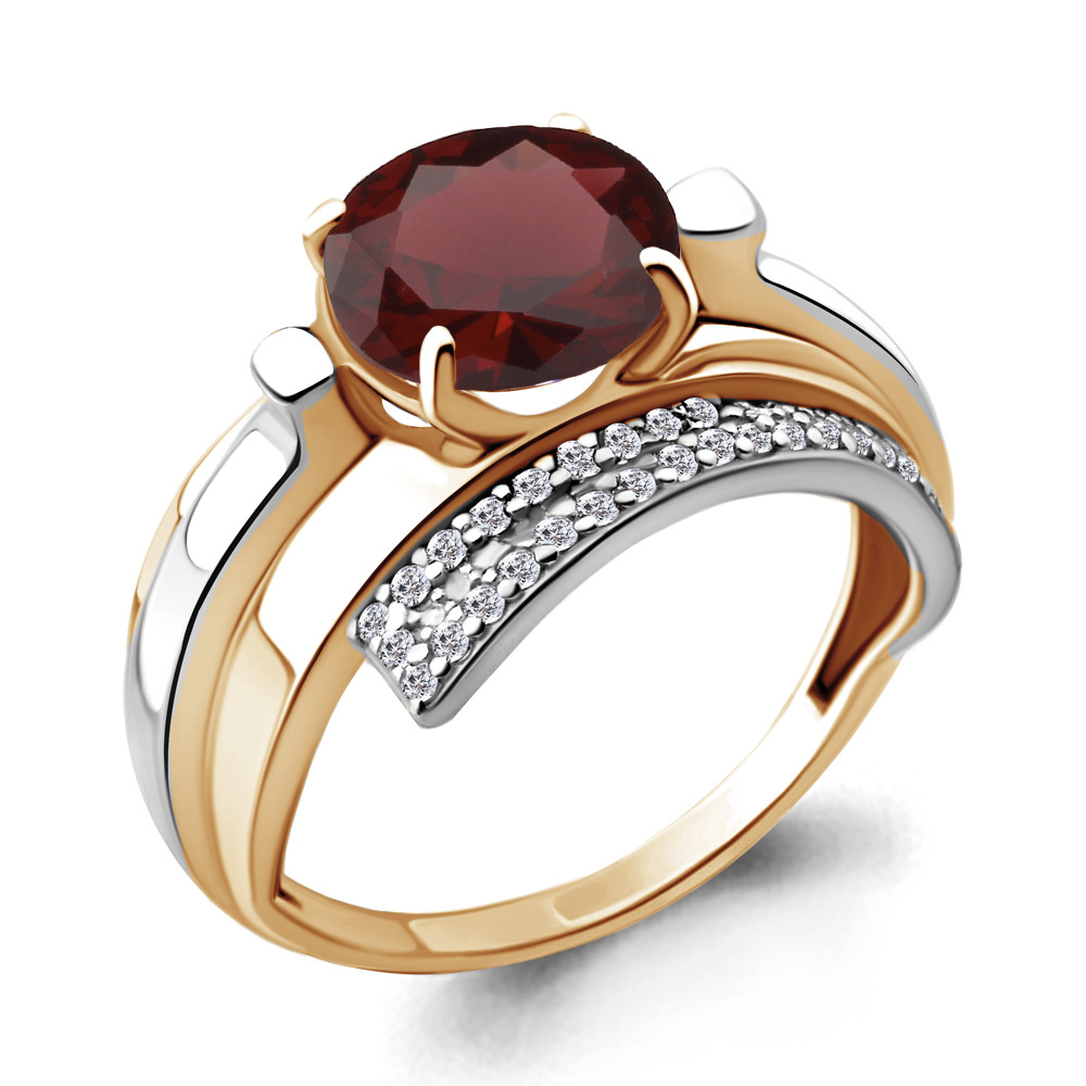 6593603А Кольцо из Серебра с гранатом, фианитами из коллекции "Maxima"