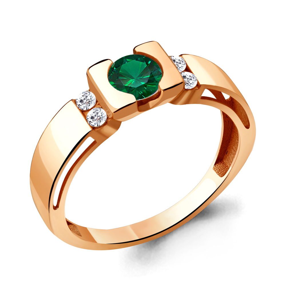 66646АГ Кольцо из Серебра с наноизумрудом, фианитами