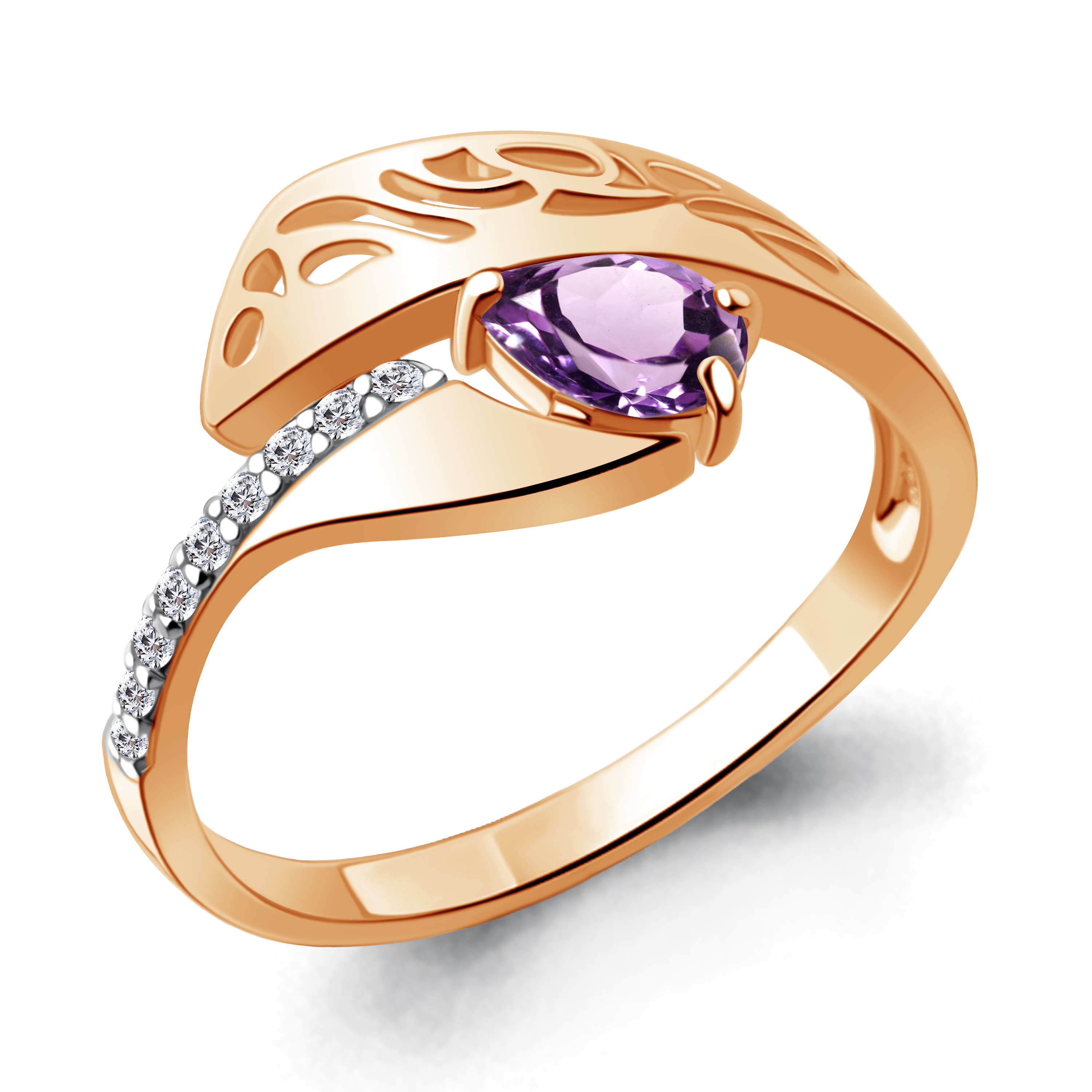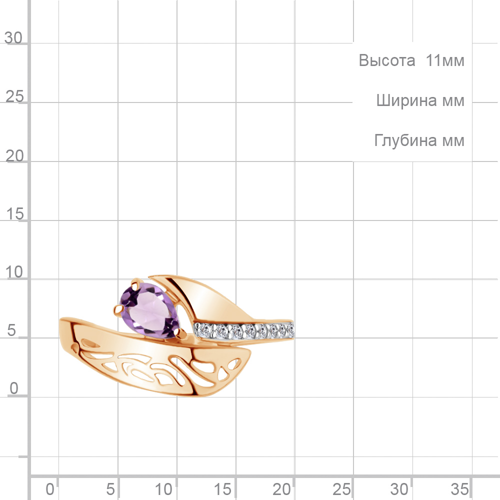 6692804А Кольцо из Серебра с аметистом, фианитами