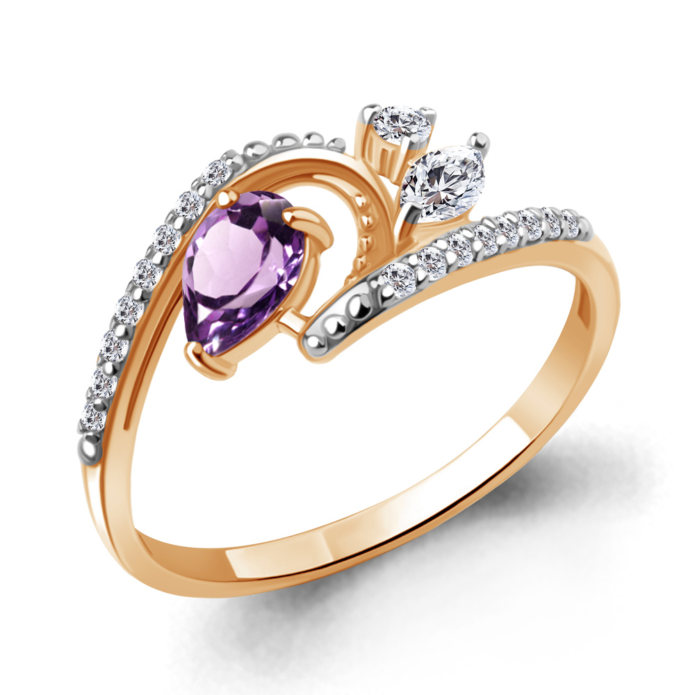 6693004А Кольцо из Серебра с аметистом, фианитами