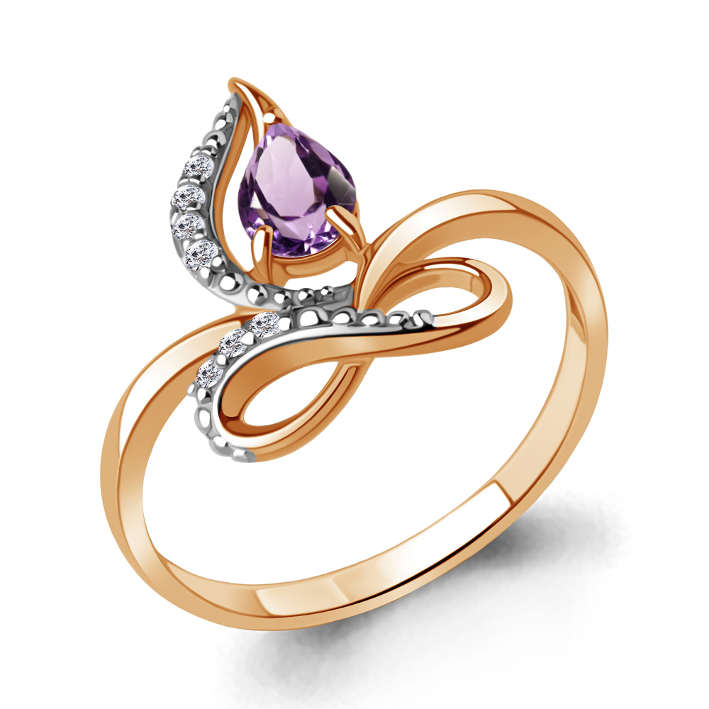 6693304А Кольцо из Серебра с аметистом, фианитами
