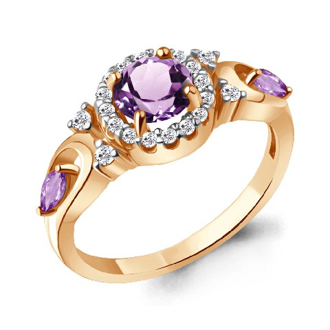 6695704А Кольцо из Серебра с аметистами, фианитами